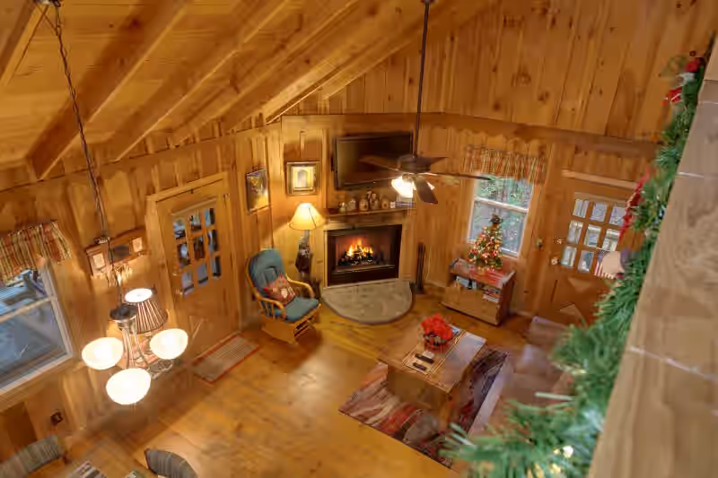 Stands out as a premier cabin with a hot tub. Catering to couples, with queen bed, kitchenette, and gas fireplace, it promises a romantic, private retreat at Helen.
