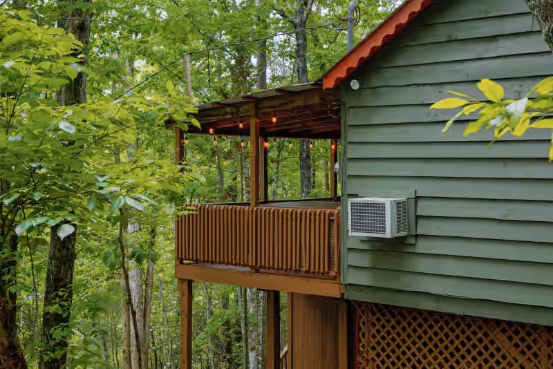 Romantic cabin with hot tub, WiFi, AC, parking, pet-friendly amenities, and smart-home features within walking distance to downtown Helen.