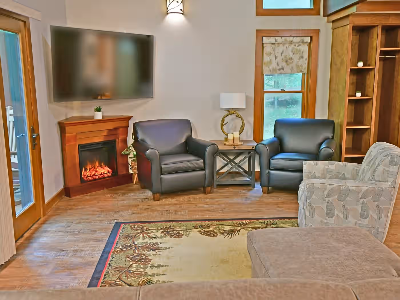 Value driven cabins with a hot tub, firepit on a paver patio and two plush bedrooms, on Patton Lake’s serene shores.