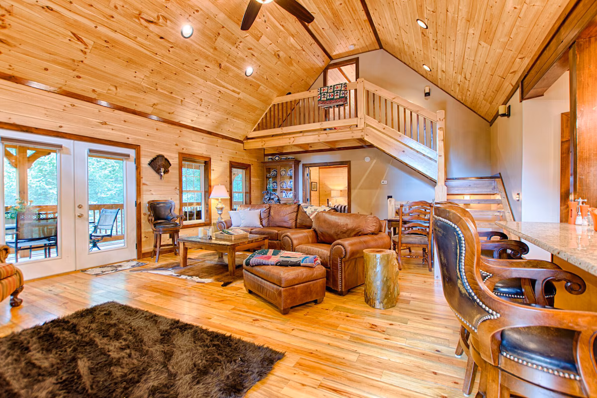 Revel in Appalachian vistas and extra space, including a second loft with an additional twin bed and a 6-person hot tub.