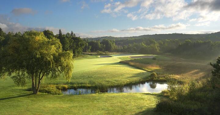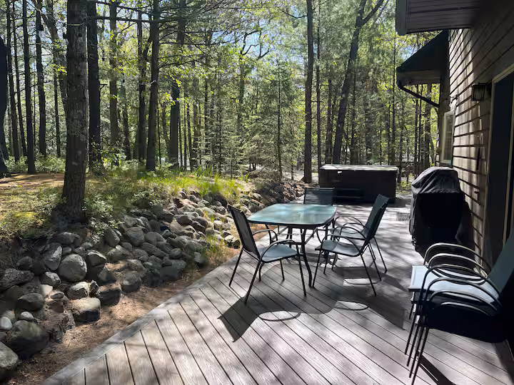 Premier woodland retreat with hot tub, parking and barbecue grill, near SkyBridge Michigan.