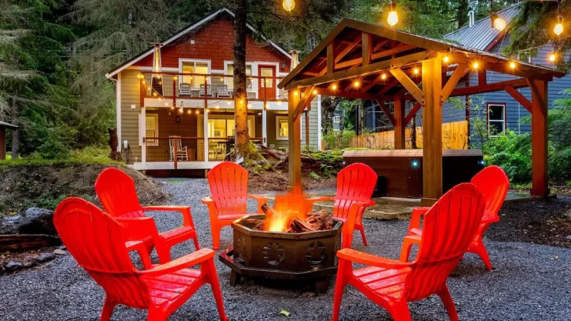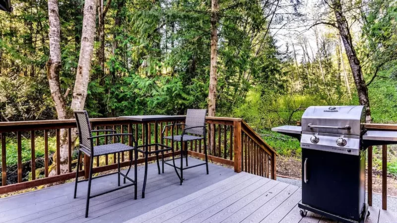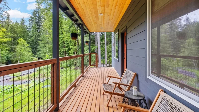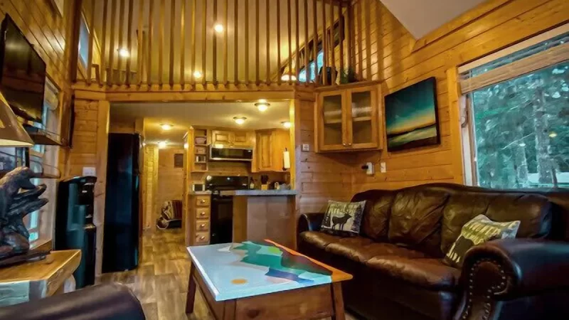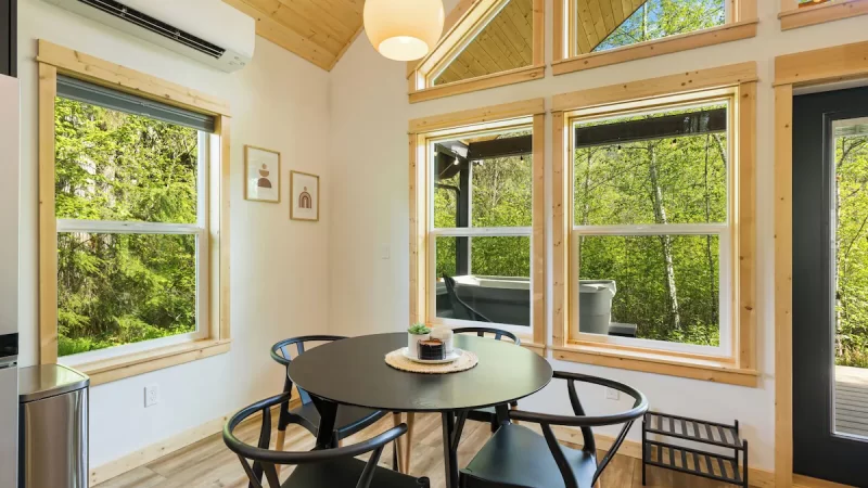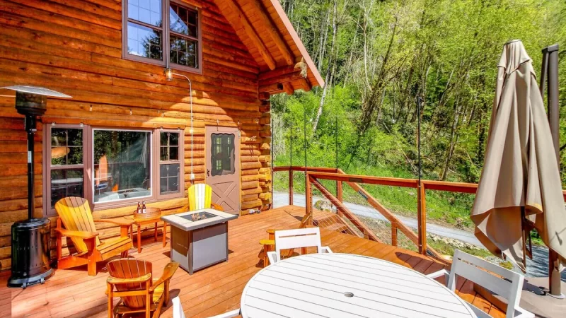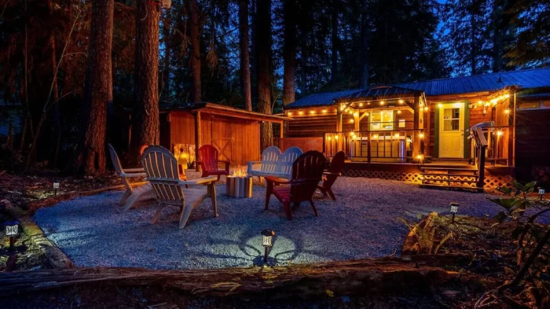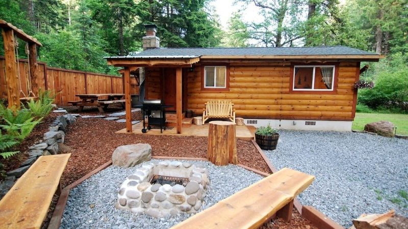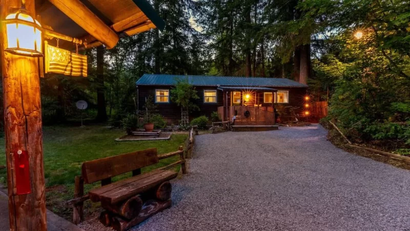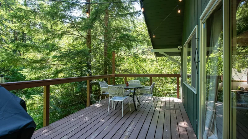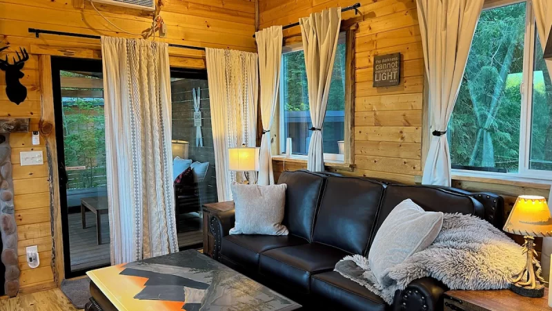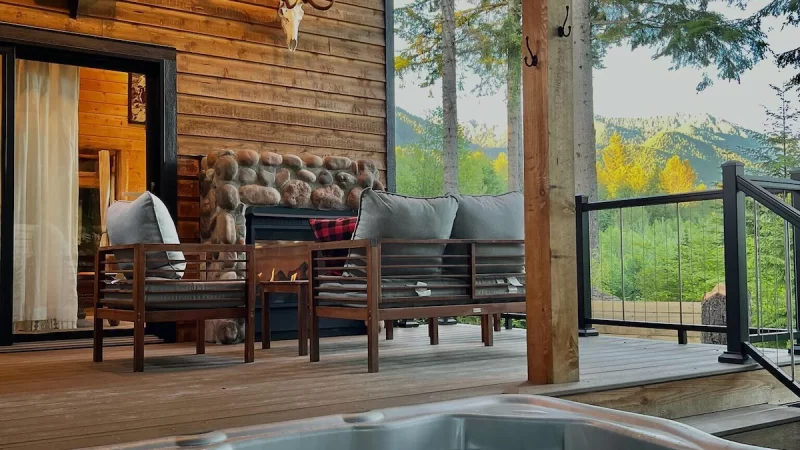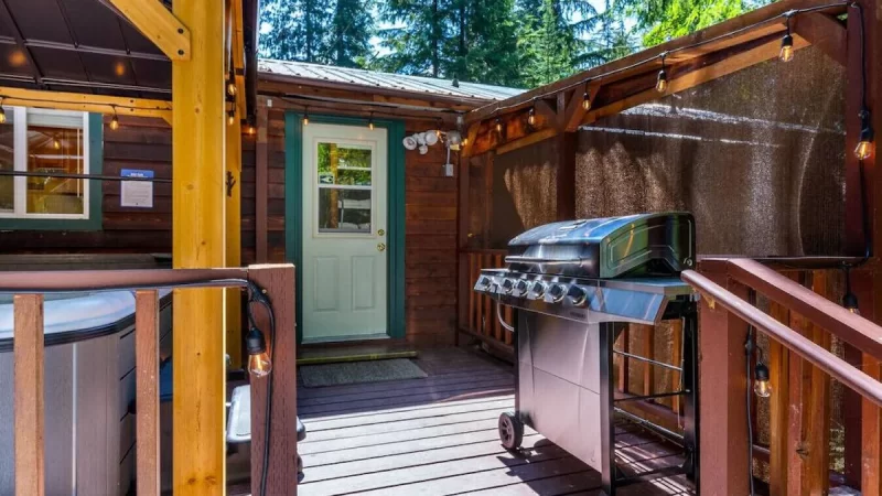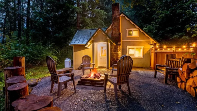 The Mt. Rainier cabins with hot tub offer a cozy stay with breathtaking forest views.