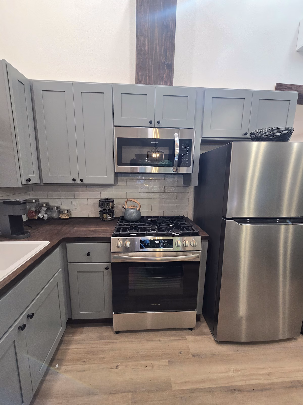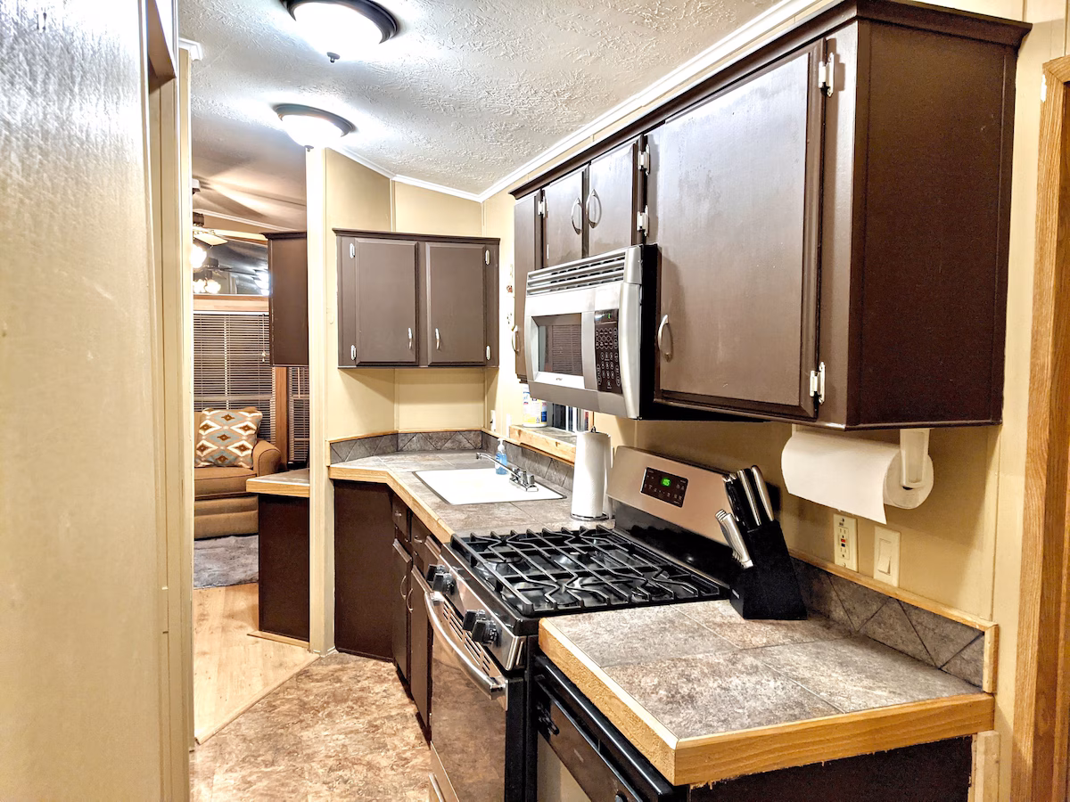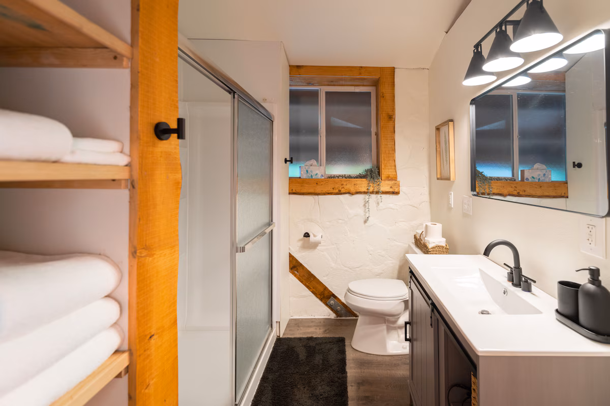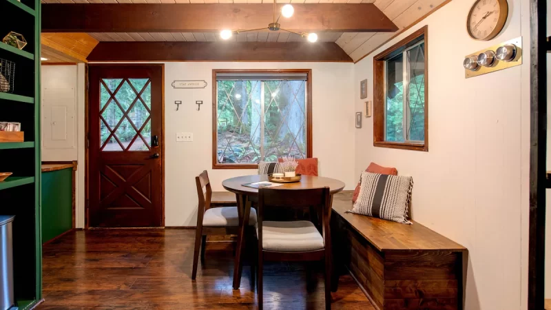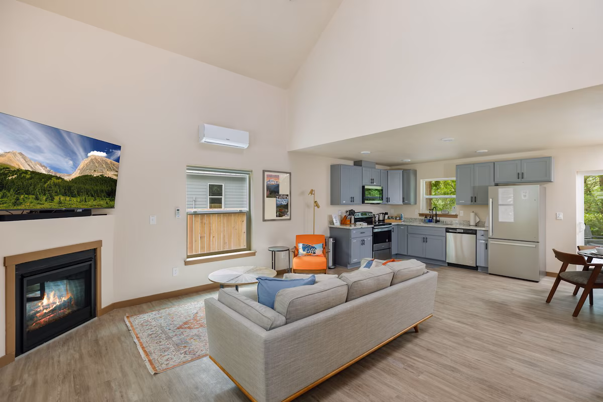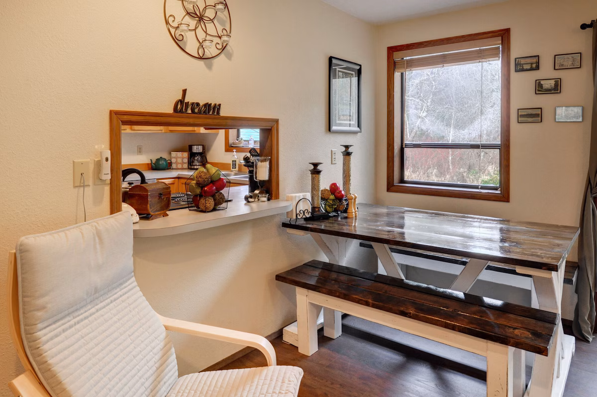Remodeled tiny home with hot tub, fire pit, full kitchen, smart TV, and creekside deck, just 6 minutes from Mount Rainier National Park.