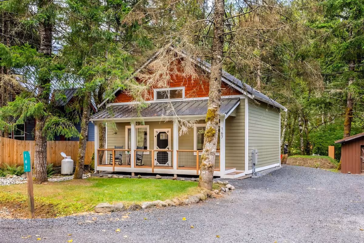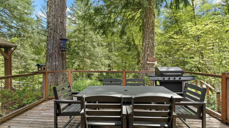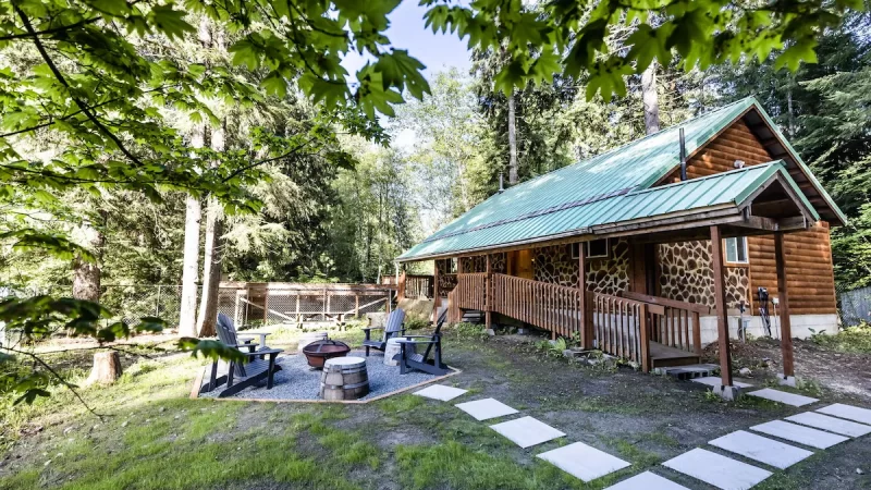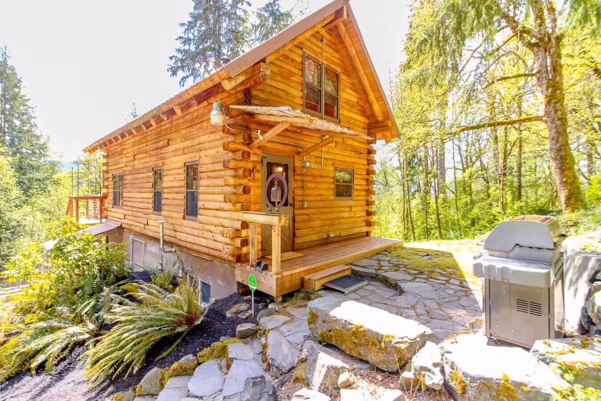 Private 2-bedroom cabin with hot tub, full kitchen, A/C, and secluded forest backyard, perfect for families, near Mount Rainier.