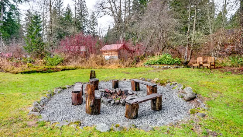 Romantic cabin with cedar sauna, full kitchen, fire pit, private hot tub, and woodstove, just 10 minutes from Mt. Rainier.