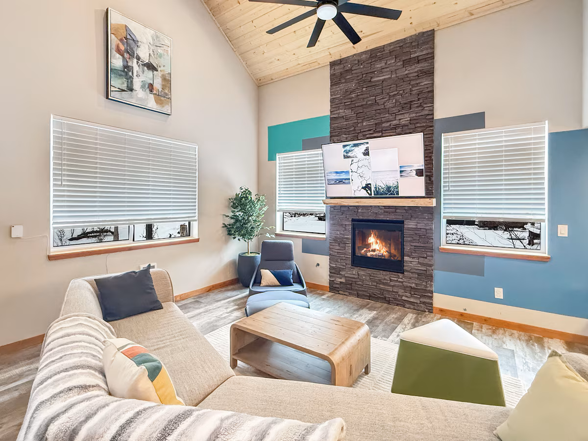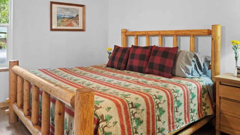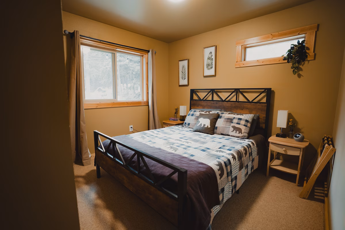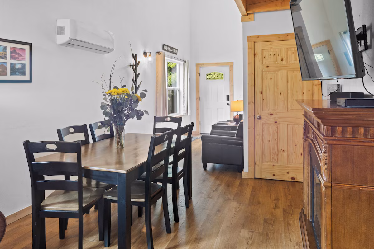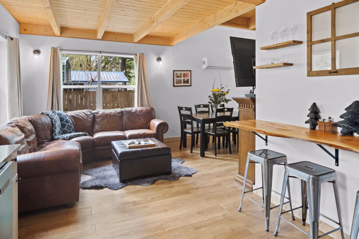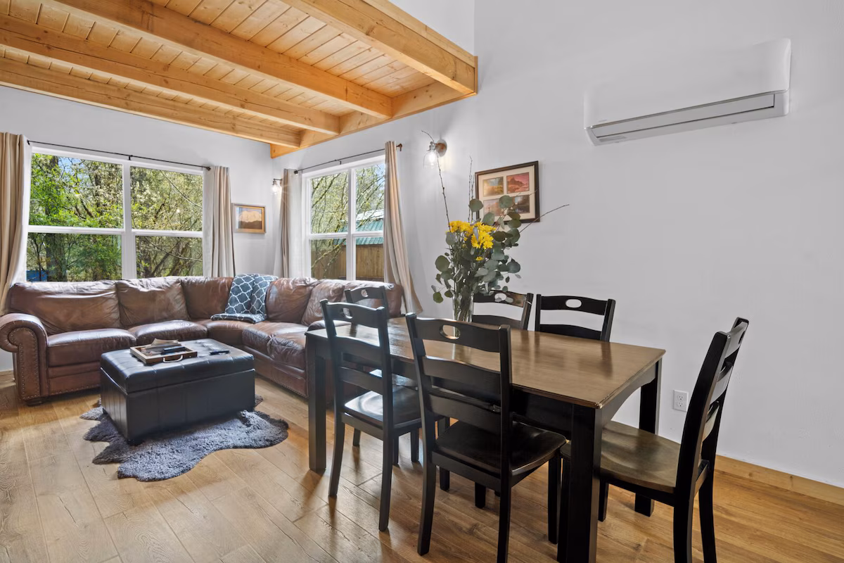 2-bedroom cabin with hot tub and modern amenities near Mt. Rainier, ideal for year-round adventures from hiking Skyline Trail to skiing Crystal Mountain.
