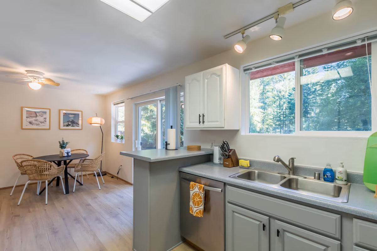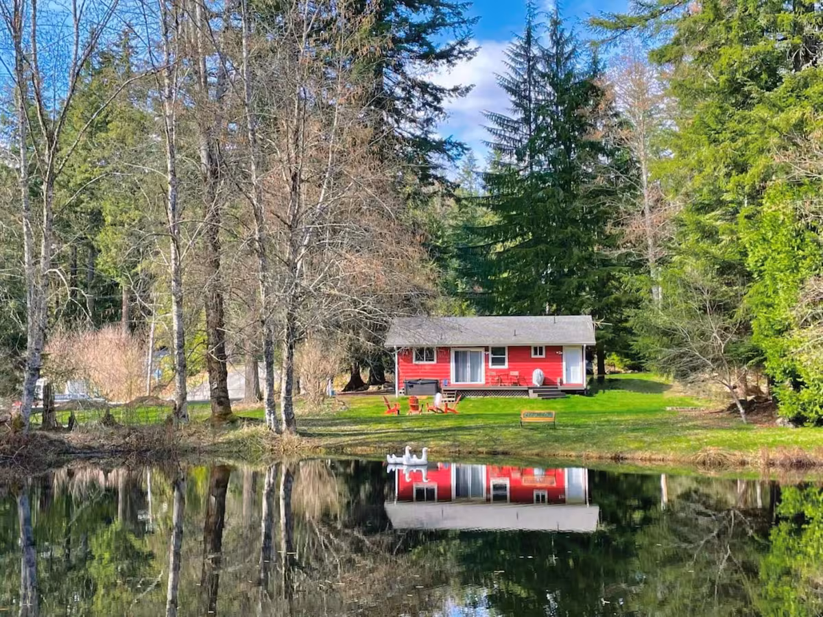 Updated 2-bedroom rambler with pond access, outdoor hot tub, deck, and wildlife views, just 8 minutes from Mt. Rainier National Park.