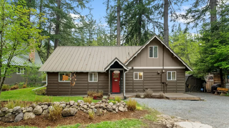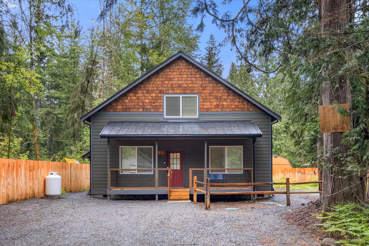 Charming 3-bedroom cabin with backyard hot tub, loft space, and peaceful forest setting, a short drive from Mt. Rainier’s year-round entrance.