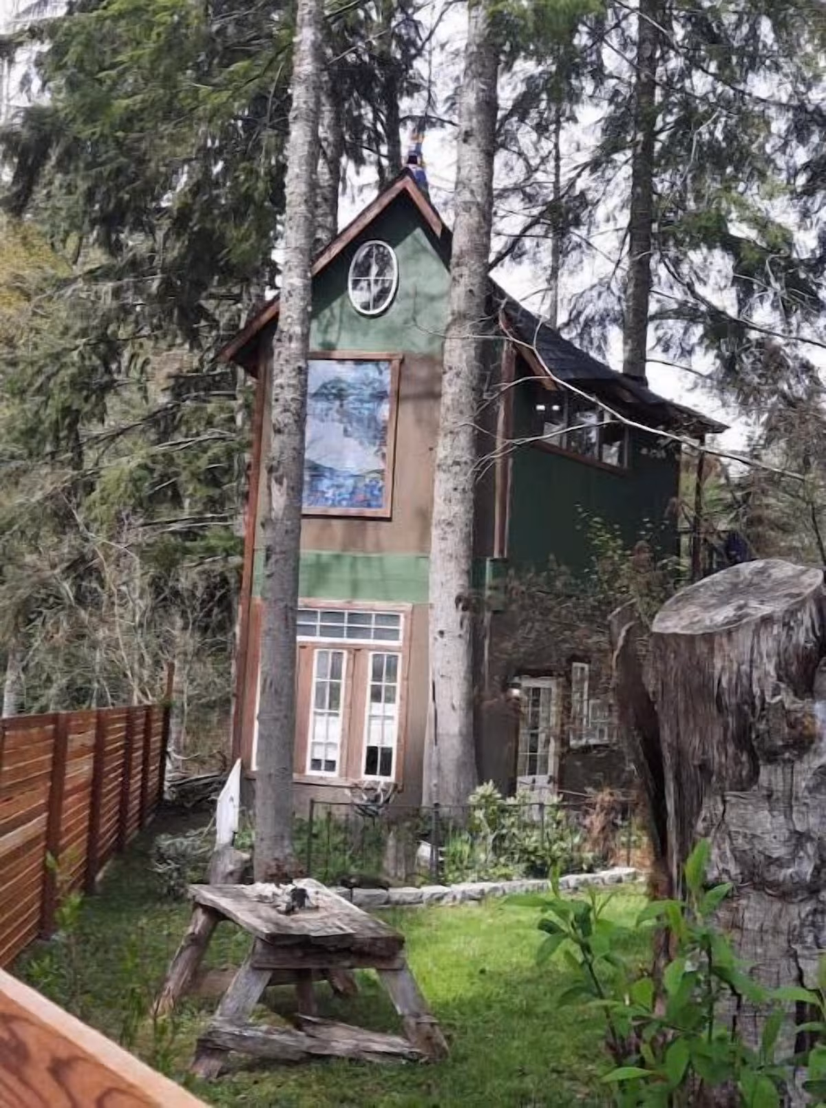 Artistic creekside cabin with treehouse, wood-burning fireplace, hot tub, clawfoot tub, and king bedroom, minutes from Mt. Rainier National Park.