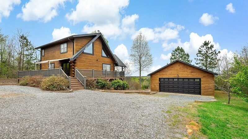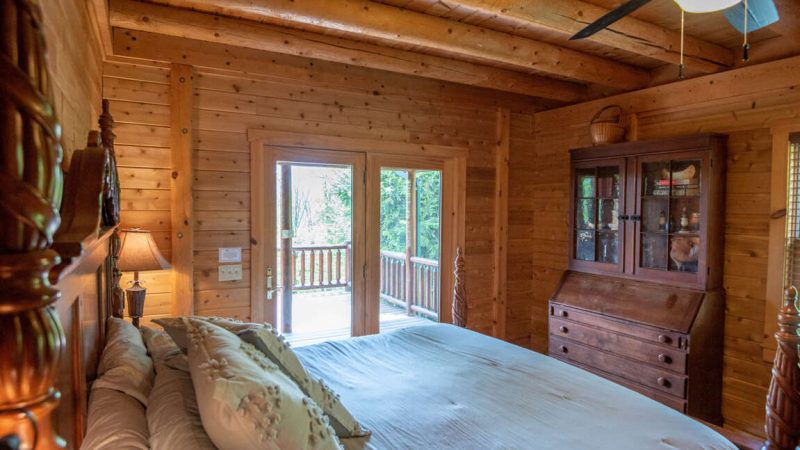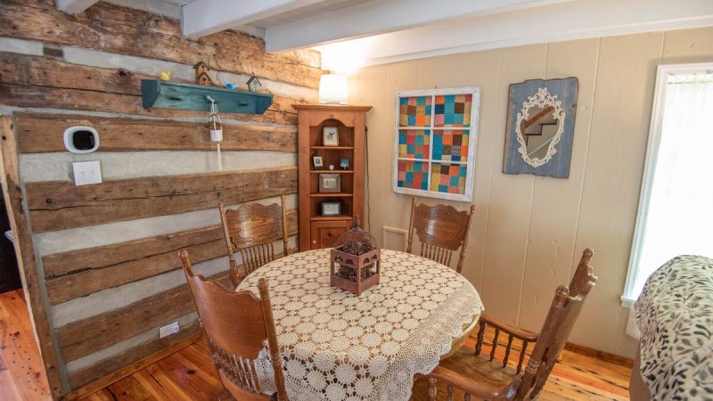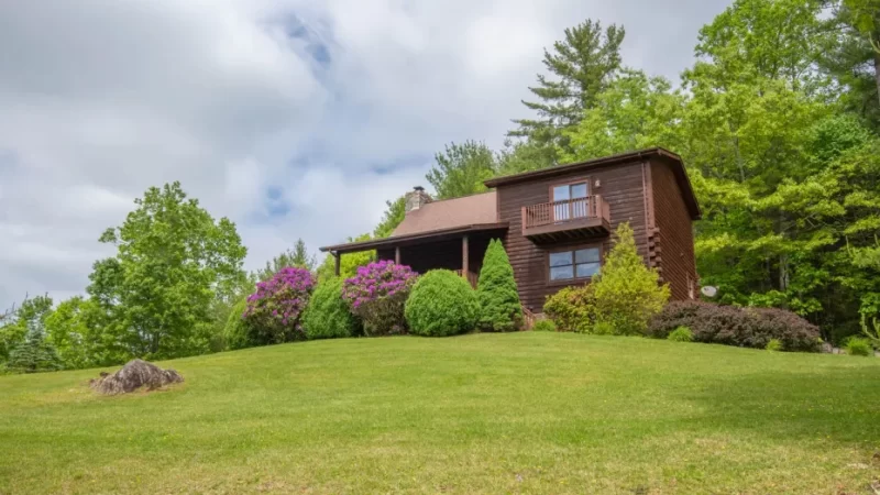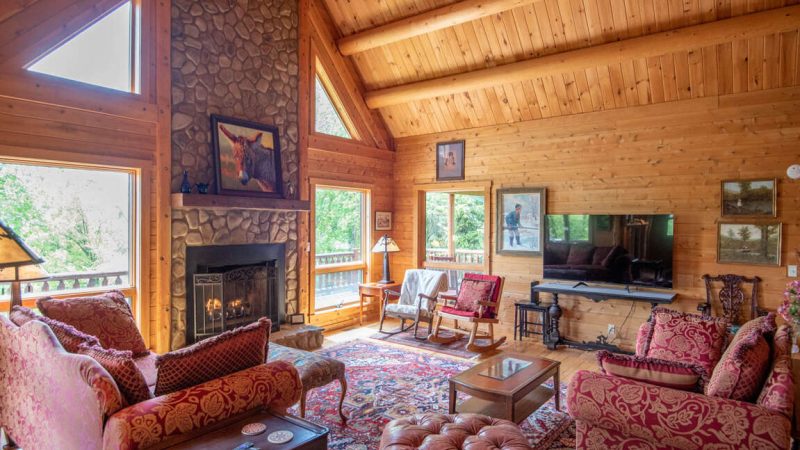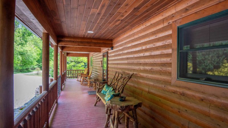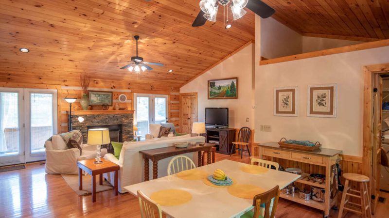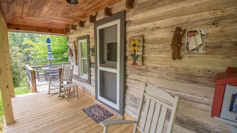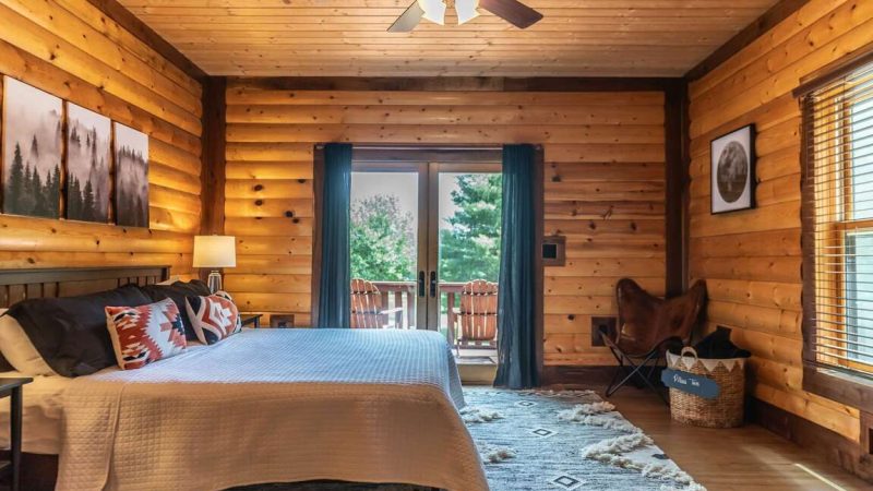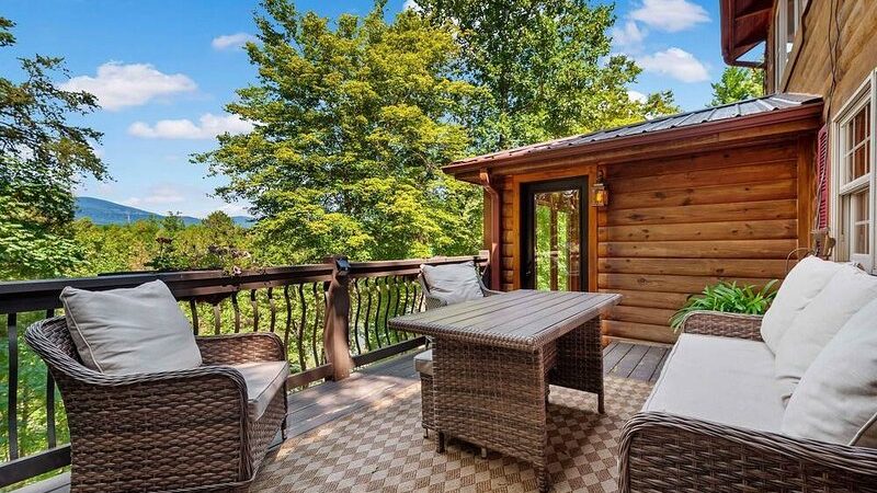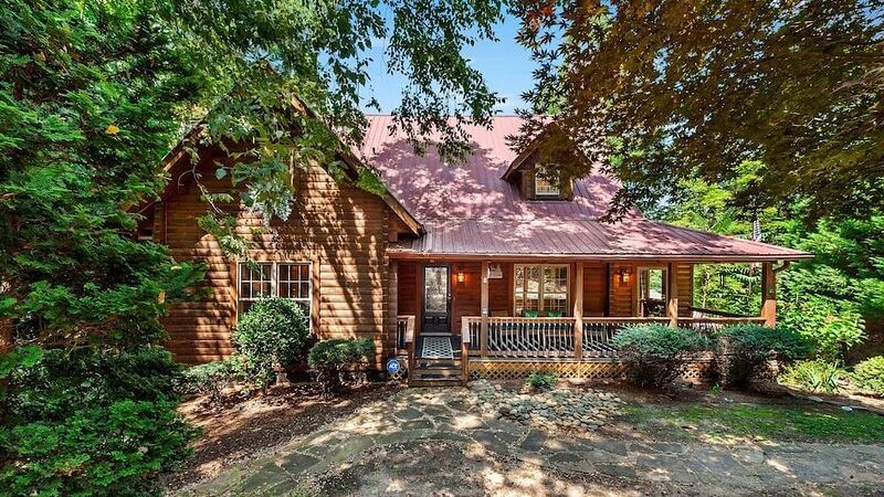 Rustic log cabin with a hot tub, spacious interiors, and nature-filled surroundings in North Carolina.