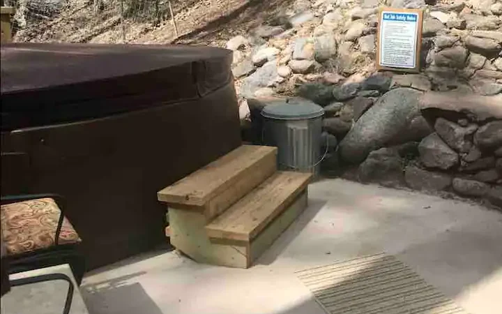 Are there any specific rules or etiquette to follow when using a hot tub in a rental cabin in Ruidoso?