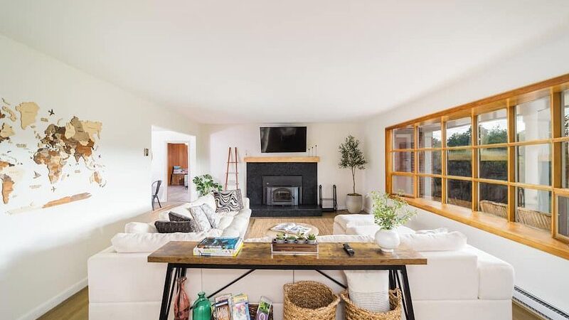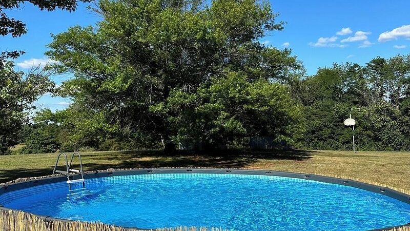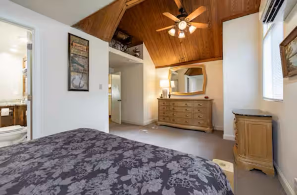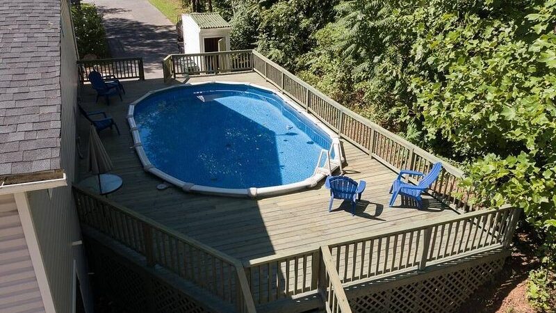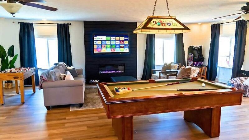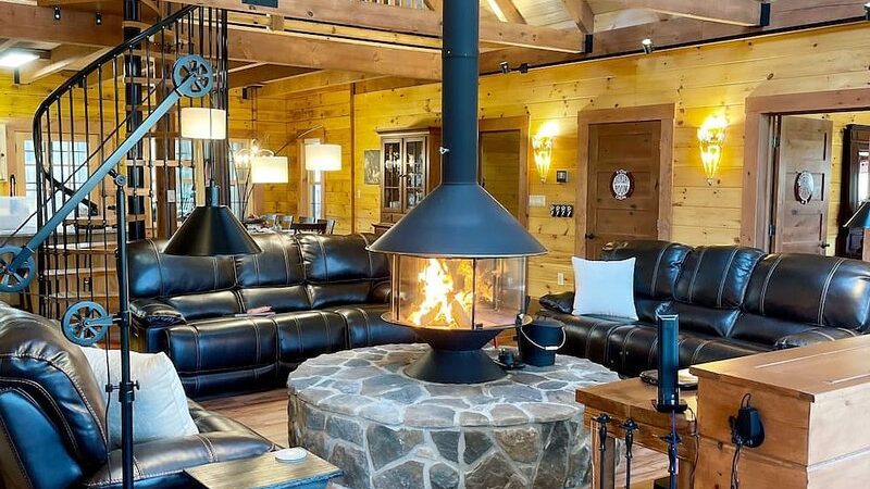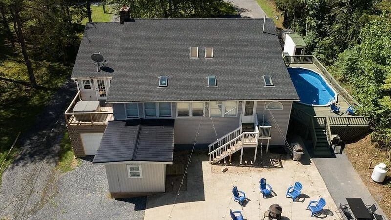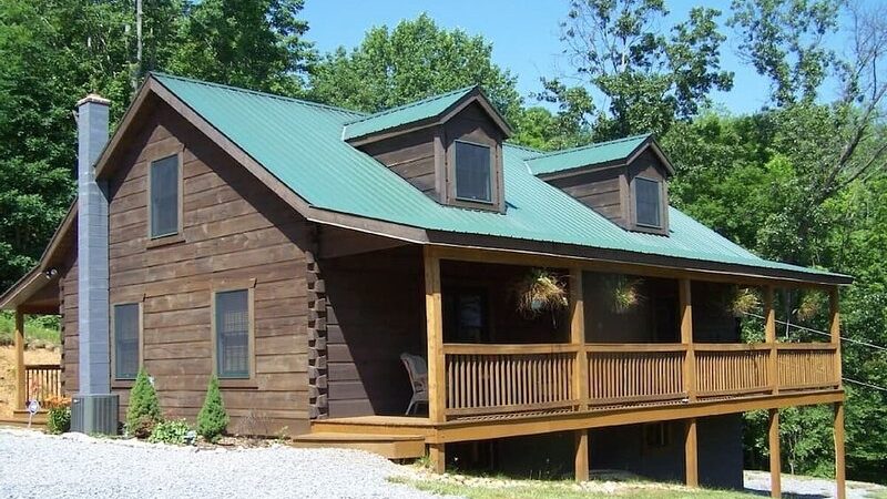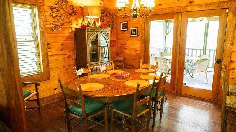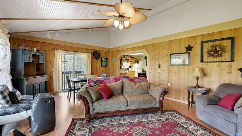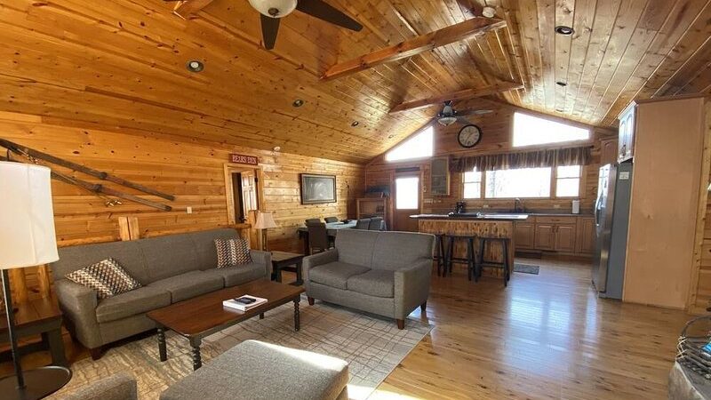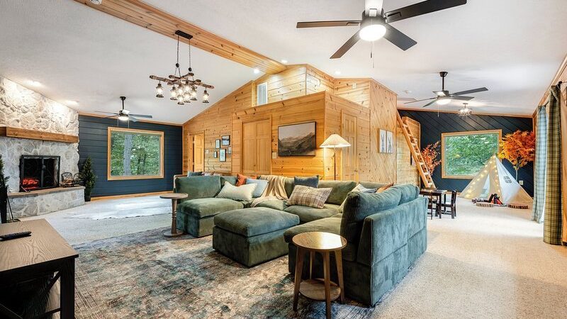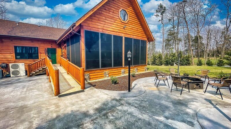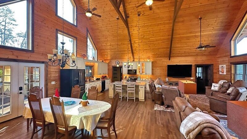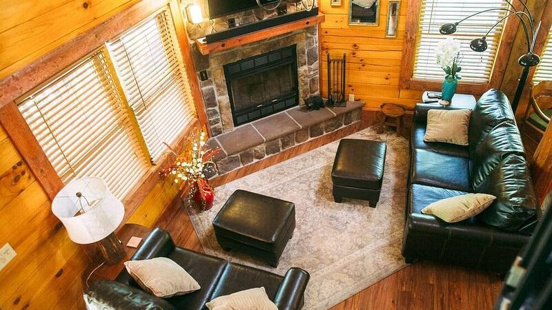 Spacious pet-friendly cabin with pool, hot tub, fireplace, air conditioning, and parking.