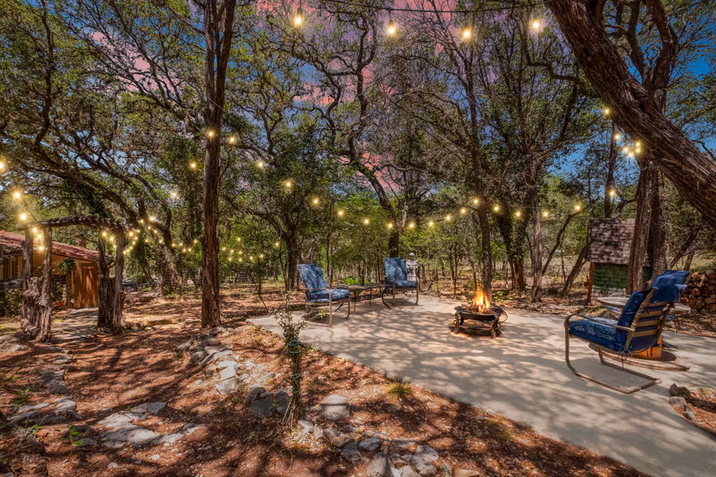 Rustic Lake Buchanan retreat with private Jacuzzi, horseshoes, campfires and biking trails in Texas Hill Country.