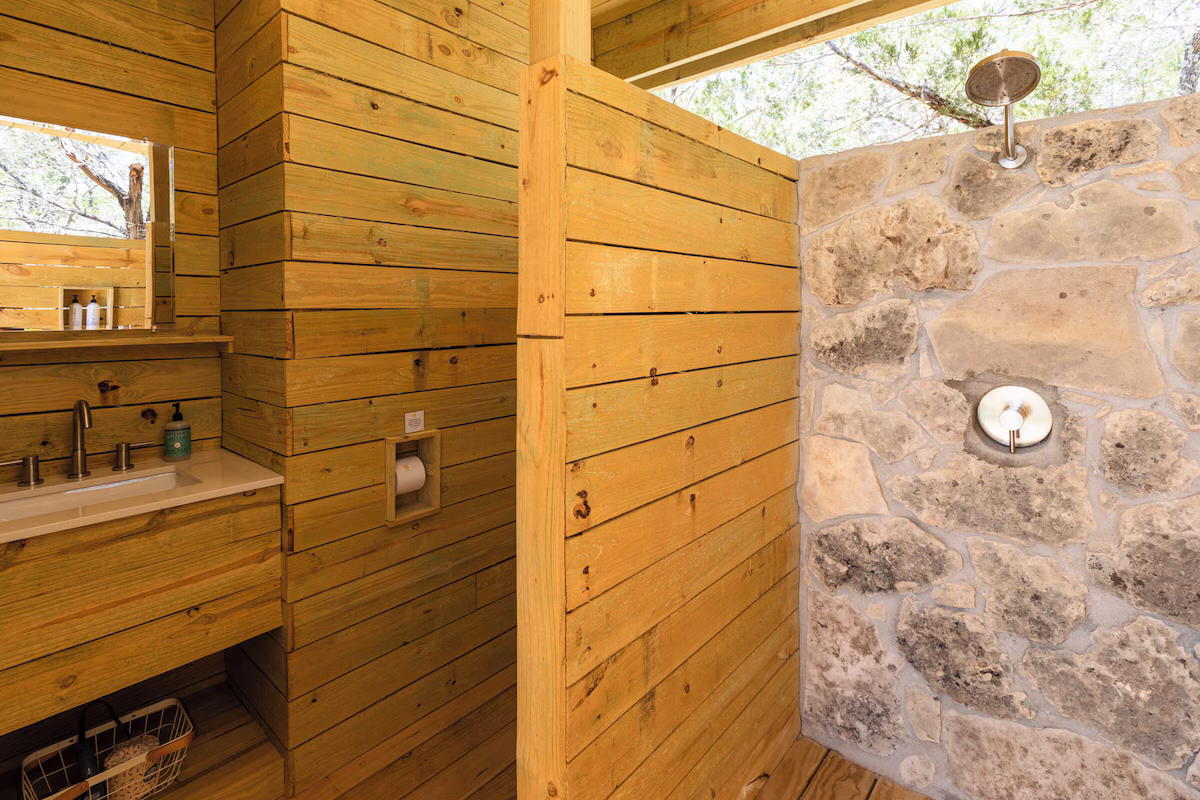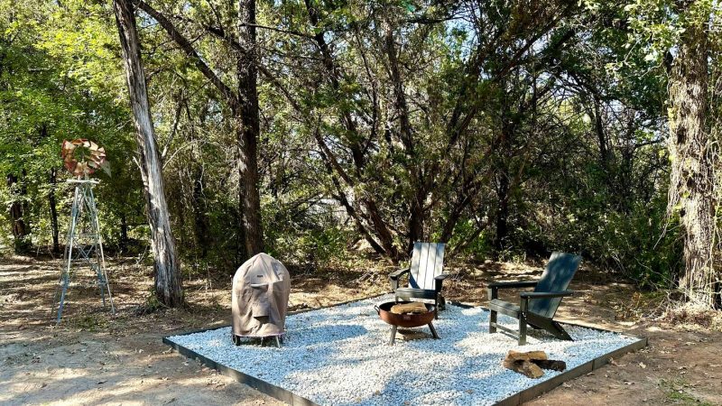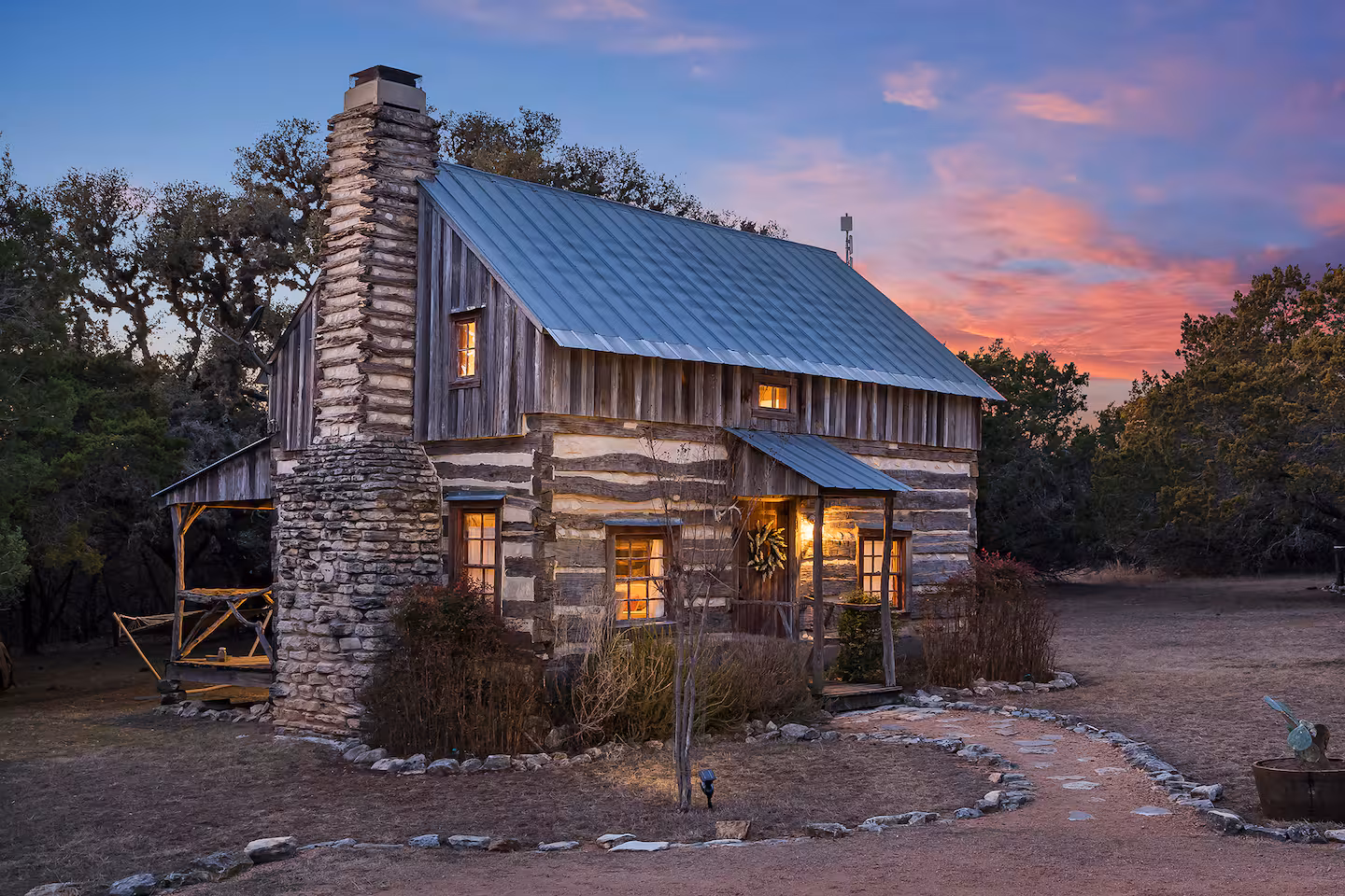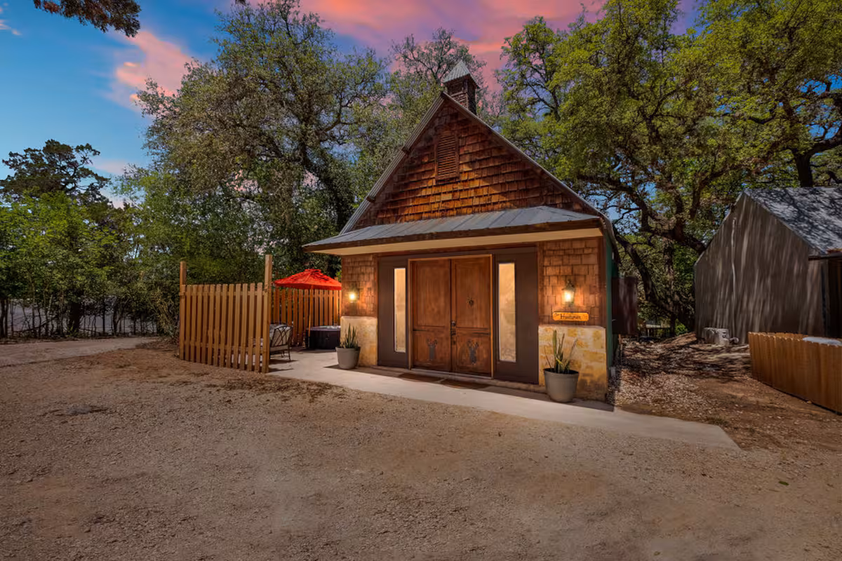 Rustic Lake Buchanan retreat with private Jacuzzi, horseshoes, campfires and biking trails in Texas Hill Country.