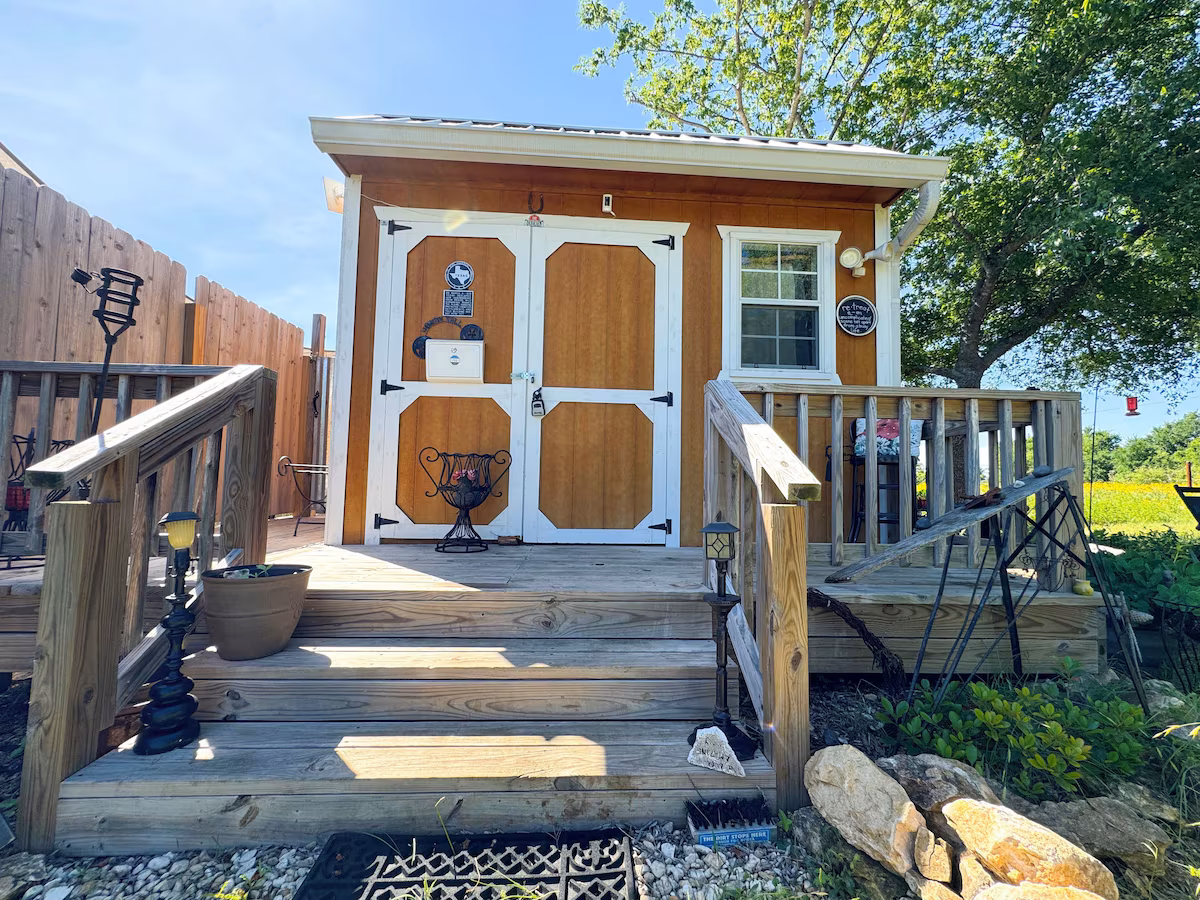 Peaceful cabin with garden view, hot tub, AC, parking, pet-friendly amenities, and spacious interiors near Magnolia Market and downtown Waco.
