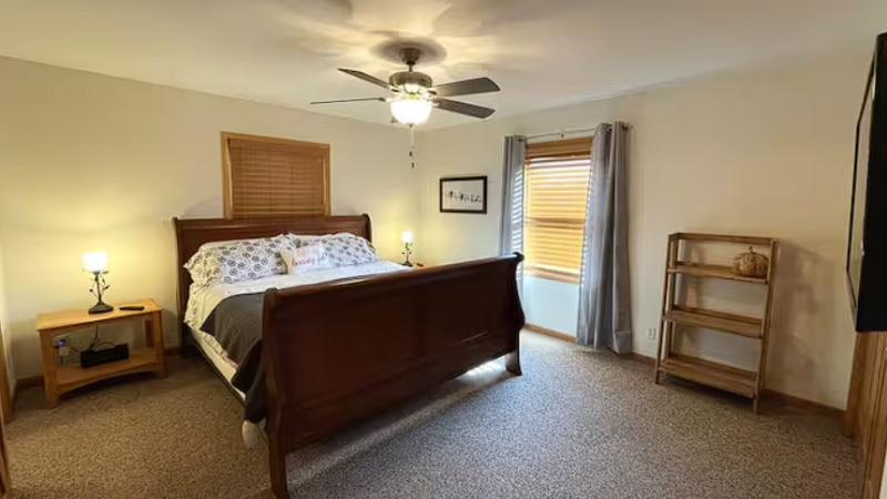 Cozy countryside escape with private whirlpool tub, 3 queen bedrooms and kitchen in Wisconsin Dells.