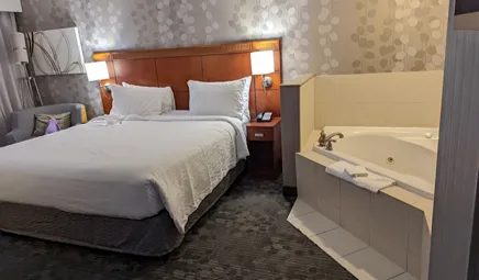 There are many hotels with in-room hot tub in Toronto with an on-site pool. Some of them include Delta Hotels by Marriott Toronto, SpringHill Suites Toronto Vaughan, and Courtyard by Marriott Toronto Brampton.