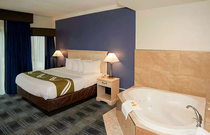 In addition to the Jacuzzi in room, these hotels typically offer a range of amenities to enhance your stay. Common amenities include comfortable beds, private bathrooms, complimentary Wi-Fi, flat-screen TVs, mini-fridges, and in some cases, fireplaces and balconies.