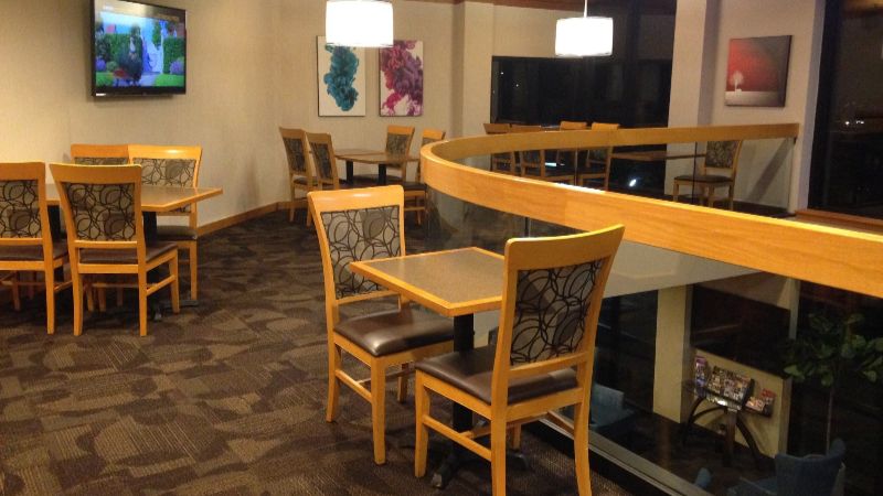 This issue repeated itself after the Lions game when we attempted to have dinner. Again, the dining room was closed, the bar was full, and children were seated at the bar at 10 PM, which is not appropriate. We were forced to eat on the lobby couch, and even then, the food took a long time. We ordered four pizzas but were told only three could be made due to lack of ingredients. This is simply unacceptable.