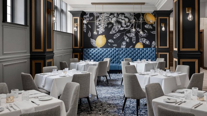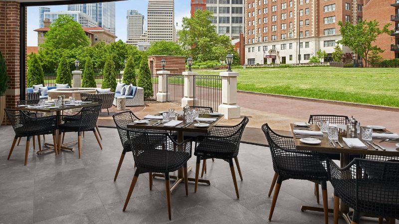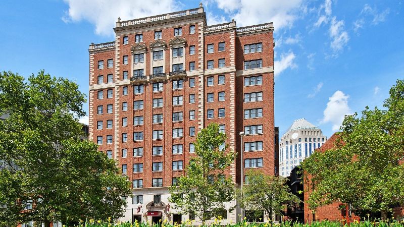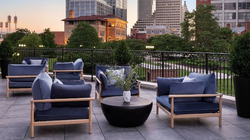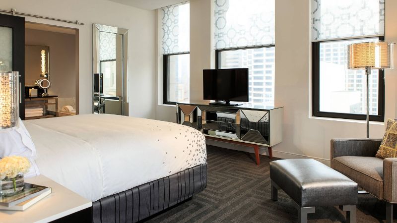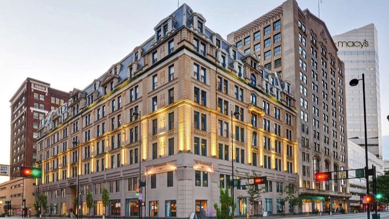 Refined hotel with private spa tubs, rooftop lounge, fine dining, and fitness center in the centre of Cincinnati.