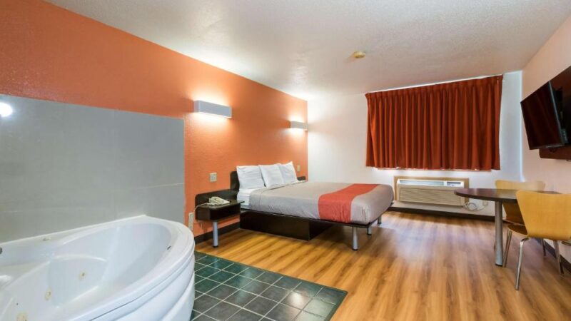 Affordable hotel with hot tub in room, air conditioning, flat-screen TV, private bathroom, and pet friendly.