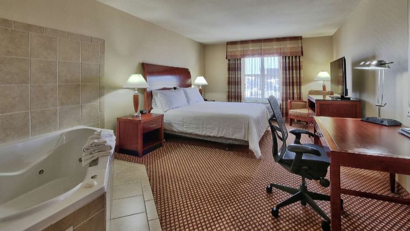 Along with in-room Jacuzzis, these hotels typically offer a range of amenities such as luxurious bedding, spacious rooms, high-speed internet, fitness centers, on-site dining options, and attentive concierge services to ensure a comfortable and enjoyable stay.