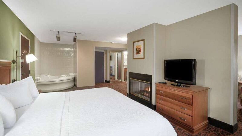 In Elizabethtown, you’ll get access to road-trip-ready, quiet, and affordable hotels with hot tubs. Overall: Hampton Inn Bardstown – Charming hotel with pool, fitness center, free breakfast, and Jacuzzi in room, near My Old Kentucky Home State Park. Romantic: Quality Inn and Suites Brandenburg – Charming hotel with a Jacuzzi suite, indoor pool, and daily continental breakfast, located along the Ohio River.