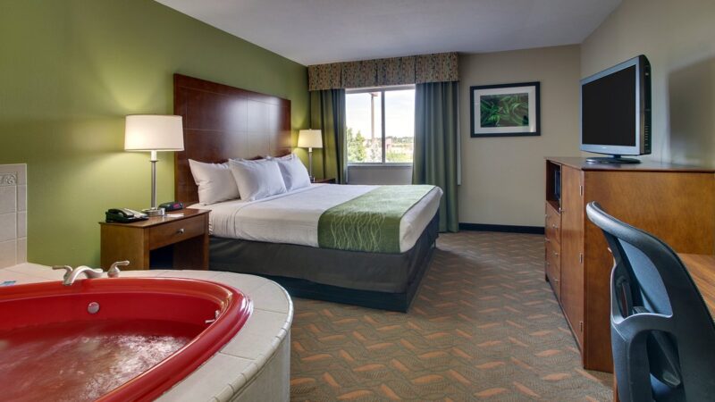 The price range for hotels with a hot tub in the room in Elizabethtown, Kentucky typically varies from about $100 to $180 per night, depending on the hotel, room type, and season. For a more accurate rate, it’s recommended to check with specific hotels as prices can fluctuate based on availability and booking time.