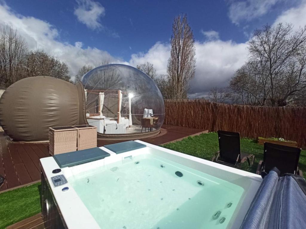 Un lugar acogedor con jacuzzi privado, varias piscinas y rutas en bicicleta, pensado para escapadas tranquilas en Navaluenga.