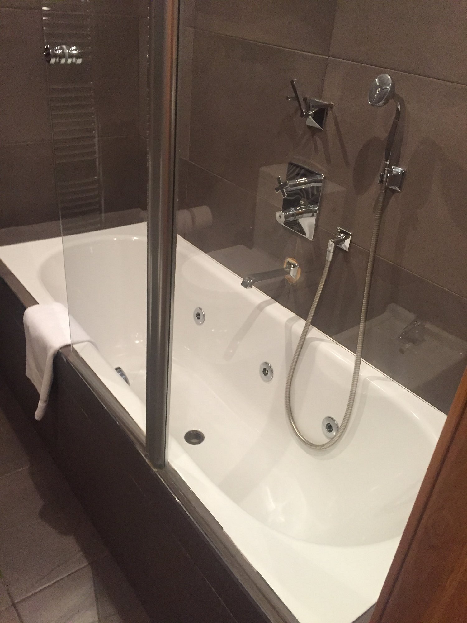 Nuestra habitación era una suite con jacuzzi: hermosa, amplísima y supremamente limpia. Desde la ventana teníamos vistas directas al monasterio y a los viñedos… ¡un verdadero lujo para los sentidos!