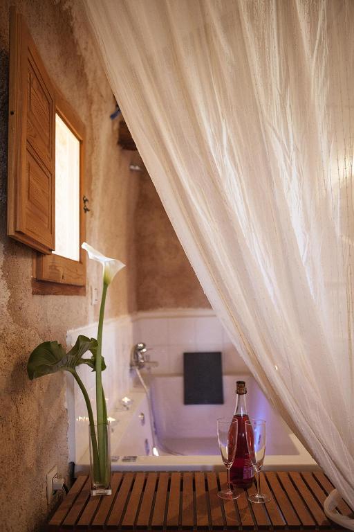 La cata vino/queso….textual…. dos triángulos papel de fumar por persona, un vino blanco caliente, etc.. la cena romántica por 60€ por pareja, un huevo frito por pareja, y una copa de vino y si querías otra, nos han cobrado aparte 4€ por cada copa de vino, los cubiertos sucios, vajilla y demás desconchada. Una pareja se pidió una botella entera de vino y como no les dio tiempo a tomarla por que a las 23:00 tenían que cerrar, se les mandó a terminar a la plaza del pueblo en plan botellón, una vergüenza… albornoces para ir al jacuzzi (diminuto) con agujeros y sin zapatillas. Solo una hora para desayuno de 9 a 10(poner despertador 8:15 para ducharte y bajar) ofertan buffet libre que no hemos visto por ninguna parte y resulta que son una loncha de pavo cortada a tijeras y unas tostadas, con tres trozos de fruta fresca seca(te dicen que puedes repetir) se te quitan las ganas y desayunas fuera a 50kms