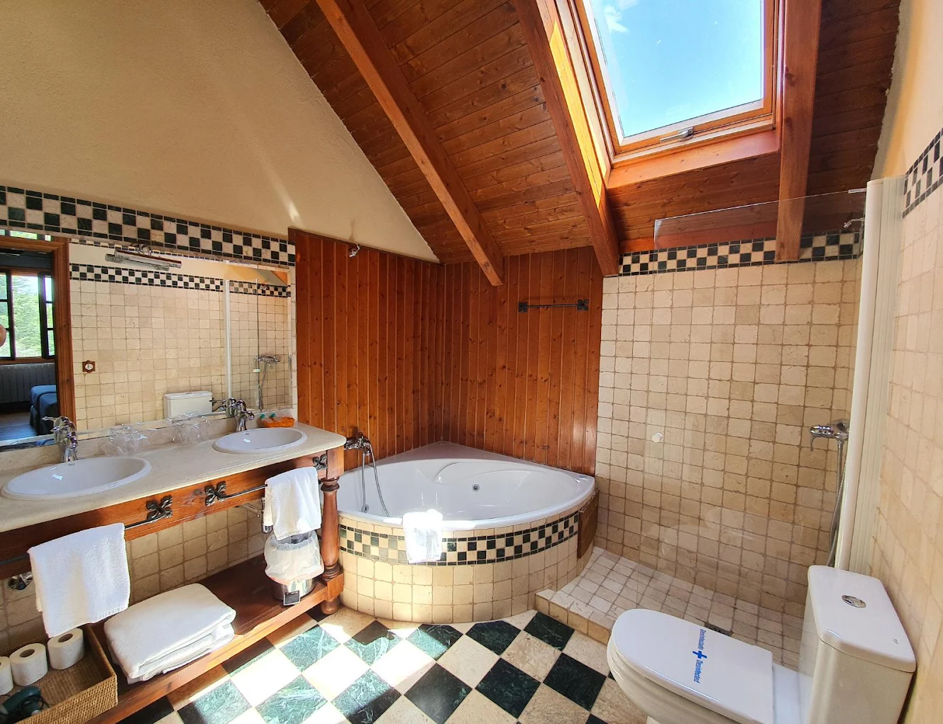 Este lugar es mágico. El alojamiento es precioso, nada más entrar te sientes un privilegiado. El entorno es natural y único, la habitación con nevera, microondas, aire acondicionado, jacuzzi, una ducha increíble, cama extra grande… pero según miras por ese tremendo ventanal…. Increíble lo que ves fuera. Ese jardín privado con piscina, todo para ti… y con tu mascota. Es un lugar idílico y precioso.