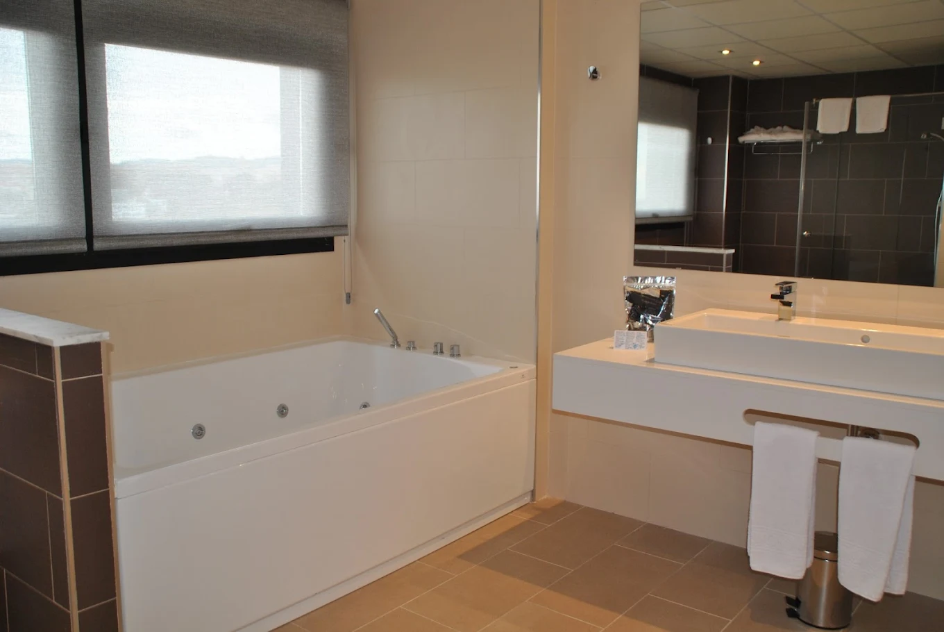 • Falta una mesa un poco mas grande que las pequeñitas que tiene en la zona de sofá, para poder cenar o desayunar en la habitación.