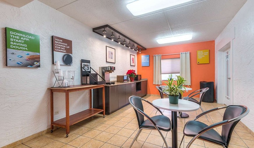 El personal es amable y atento, y hay té y café de autoservicio disponibles en todo momento, además de algunos pequeños bocadillos saludables como barras de granola (pero le aconsejo que traiga algunos de sus bocadillos favoritos ya que las opciones son limitadas).
