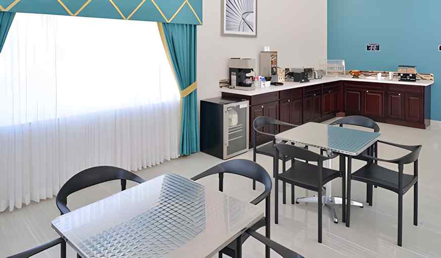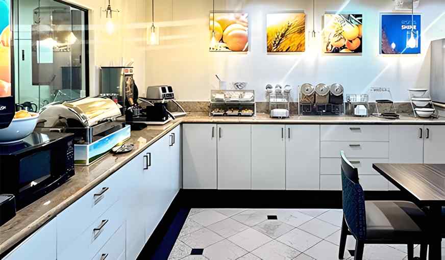 Desayuno 🙅🏻.... No cuentes con eso... Acceso rápido a la autopista... El transporte lo debes resolver con Uber.... Personal amigable.