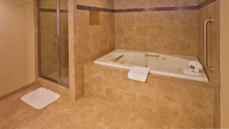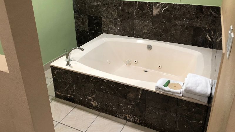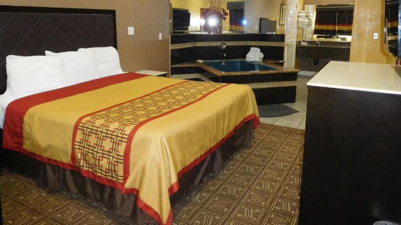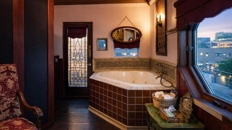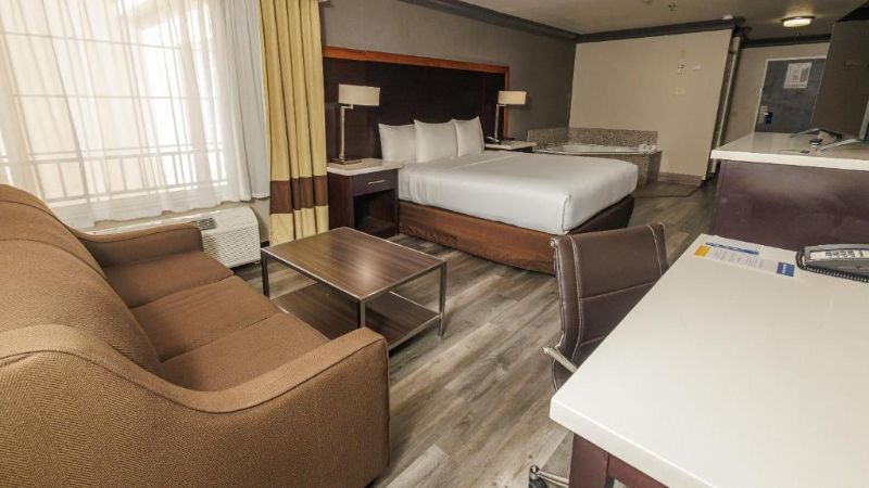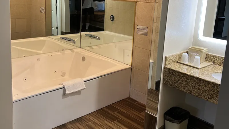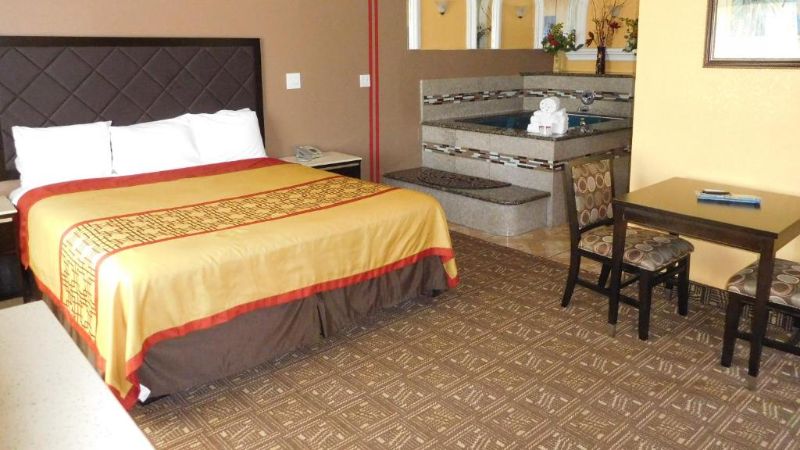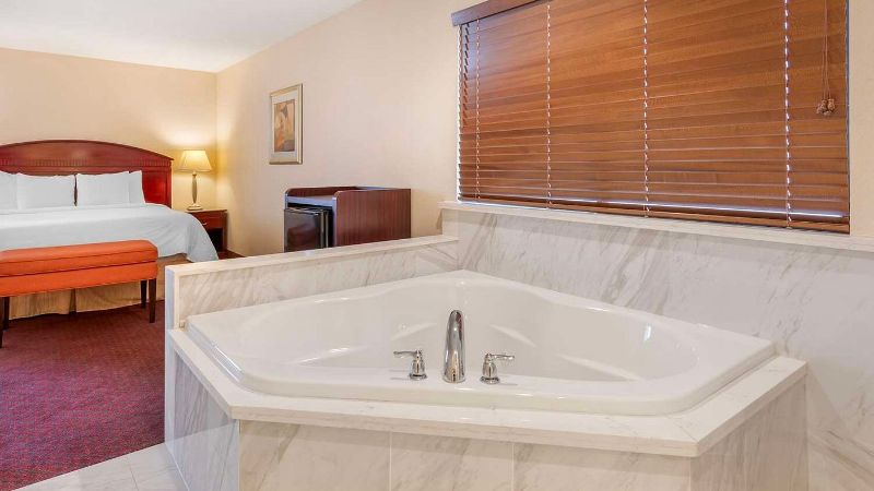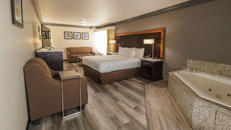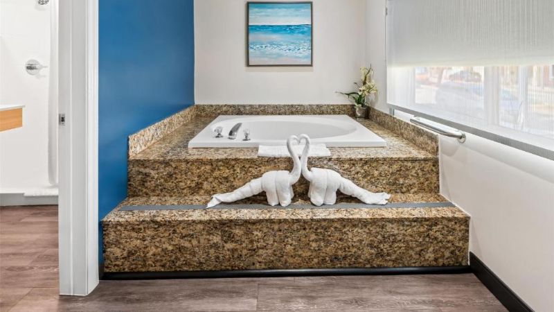 Hollywood works great for travelers filtering specifically for rooms with reasonably priced jetted tubs. For instance, Jacuzzi suites at the Best Western Hollywood Plaza Inn cost around $240 per night. The property’s courtyard-style architecture reflects classic Southern California motor-inn design.