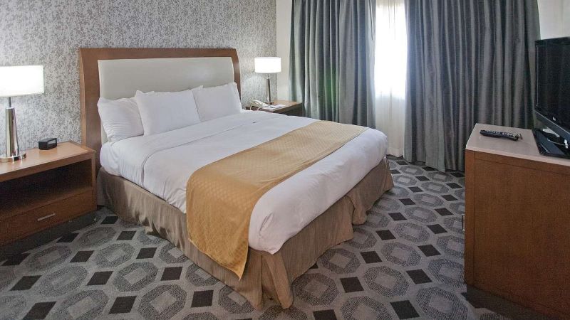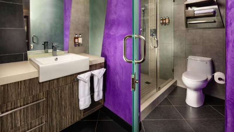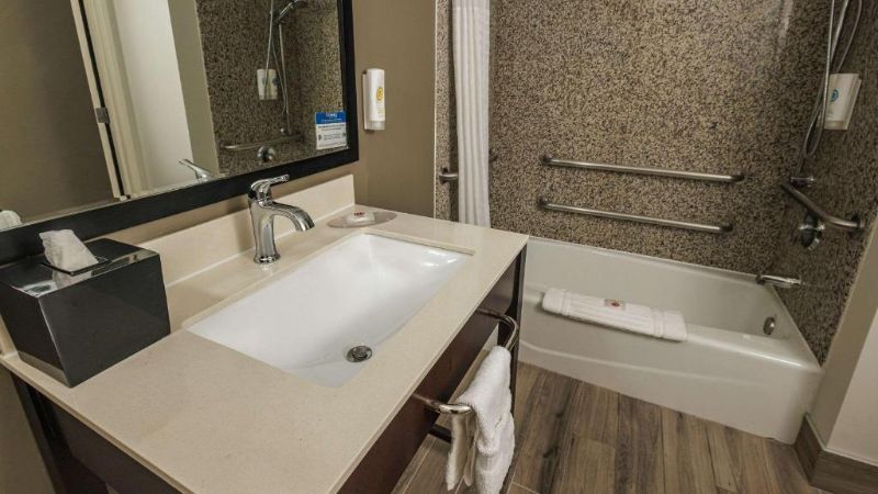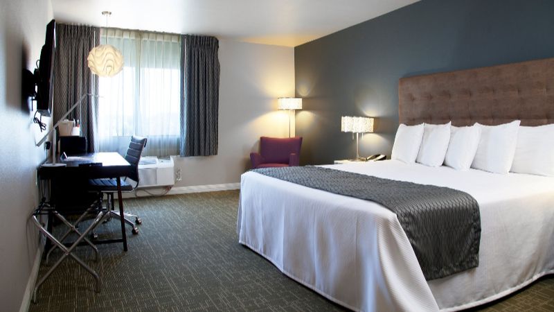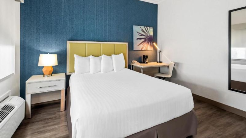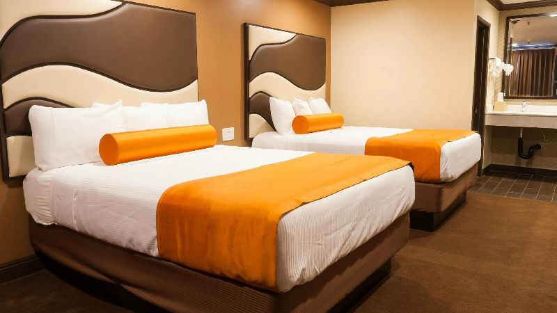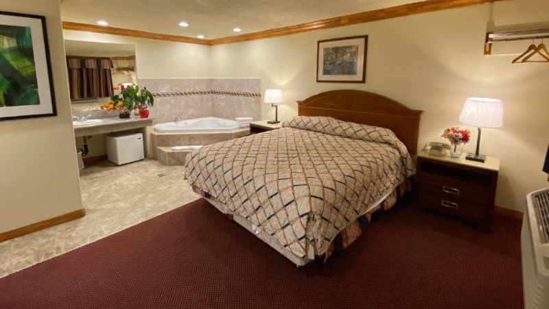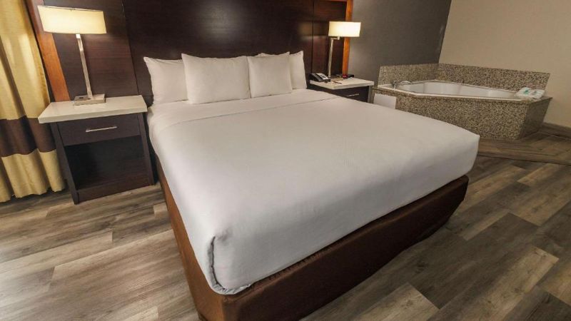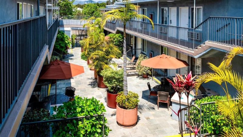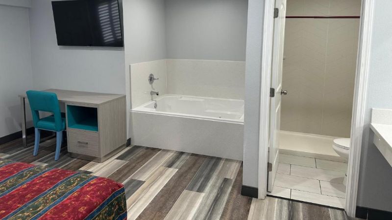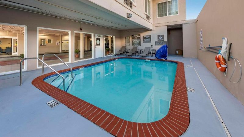 Hollywood works great for travelers filtering specifically for rooms with reasonably priced jetted tubs. For instance, Jacuzzi suites at the Best Western Hollywood Plaza Inn cost around $240 per night. The property’s courtyard-style architecture reflects classic Southern California motor-inn design.