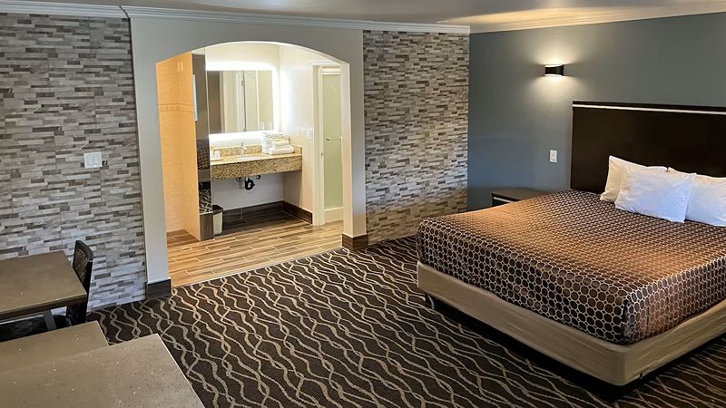 A practical Gardena base for short South Bay trips. In the Standard Room the Jetted Tub is placed in the bedroom.