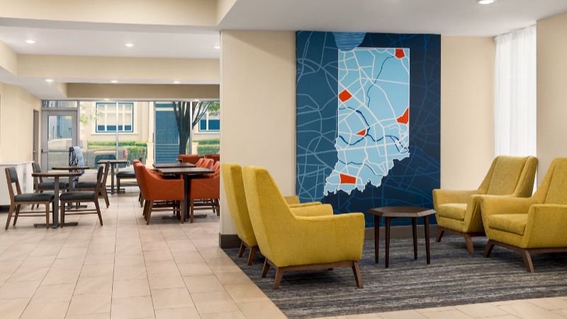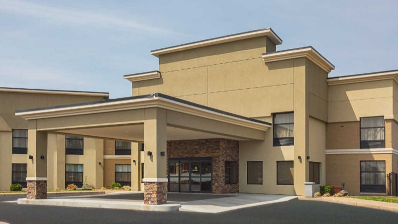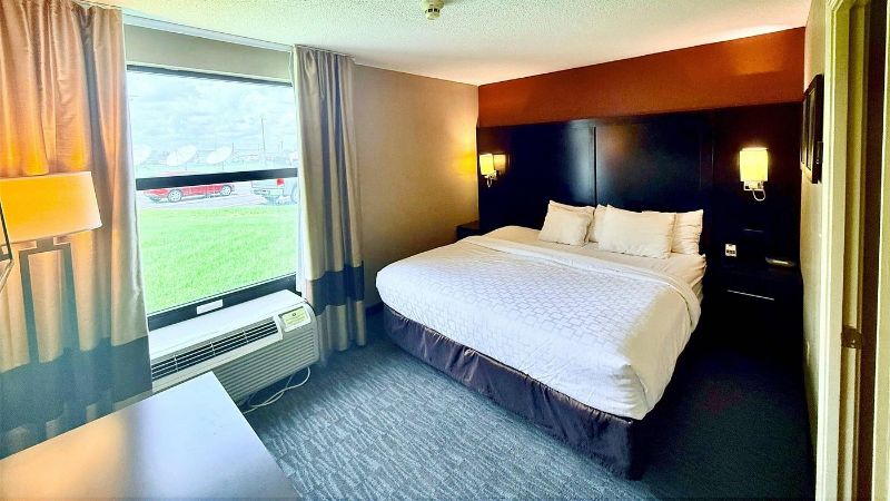 Great value for money hotel with Jacuzzis in room and free breakfast, 6 miles of Angel Mounds State Historic Site.