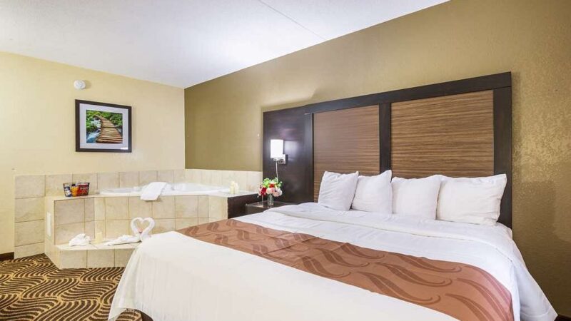 Hotels in Florence, KY that offer in-room Jacuzzis or hot tubs often provide additional amenities to enhance your stay. Alongside the Jacuzzi or hot tub, you can expect amenities such as complimentary breakfast, free Wi-Fi, on-site fitness centers, and convenient parking options. Some hotels may also offer indoor pools, room service, on-site dining, and business center facilities. Checking the hotel’s amenities list can help you choose a property that aligns with your preferences and ensures a comfortable and enjoyable stay in Florence, KY.