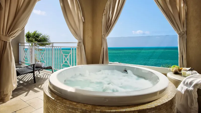 Many hotels with hot tub in room in Florida offer an on-site spa where you can enjoy. Some of these hotels include Hyatt Regency Coconut Point Resort And Spa, Four Seasons Hotel at The Surf Club, Surfside, Florida, and Pier House Resort & Spa.