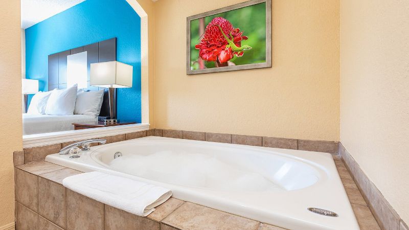 The best affordable hotel with hot tub suites in Florida is Country Inn & Suites by Radisson, Gainesville, FL. We have a full list of budget-friendly hotels with in-room Jacuzzi in Florida.