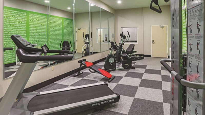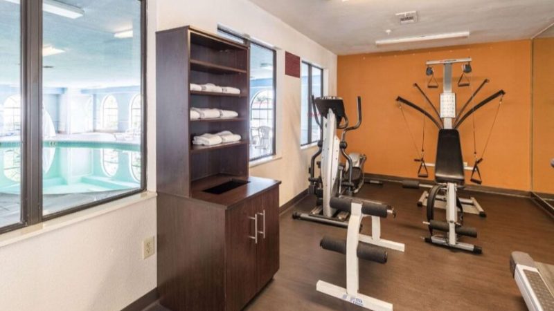 Do any of the hotels with whirlpool tub in room in Fort Worth have a gym?