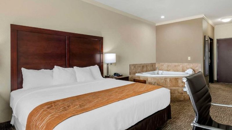 The best affordable hotel with whirlpool suites in Fort Worth is Comfort Inn & Suites Fort Worth – Fossil Creek. You can see our full list of best budget-friendly hotels with hot tub in room in Fort Worth.