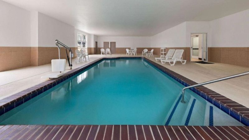 Breakfast was the usual mid-range hotel fare, but the indoor pool and hot tub are a real treat that we much enjoyed after a long day on the road.