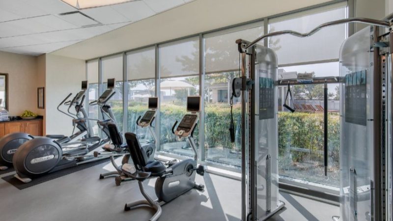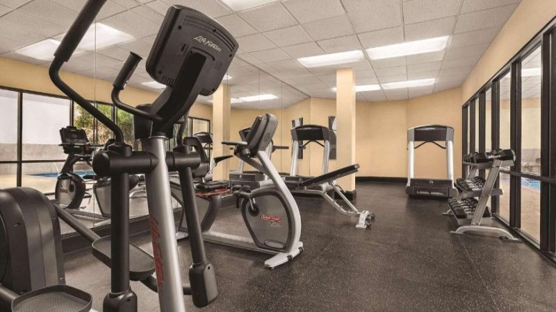 Do any of the hotels with whirlpool tub in room in Fort Worth have a gym?