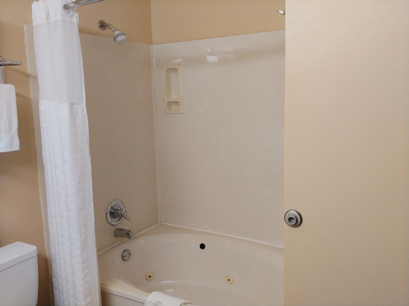 Older hotel that's a bit run down, BUT you can tell improvements have been made making it adequate for able-bodied individuals.. Newer furniture, newer beds, main area of hotel was clean and attractive looking, hotel room was ok. Really worn carpeting, Accessible bathroom was nice sized and easily accessible BUT the shower has not been properly cleaned for quite awhile because when I was assisting my disabled husband to shower, the floor of the shower was so slick from years of soap scum or some other slippery residue that we both fell. Walls are also vey thin, you will hear what the people in the rooms next to you are discussing. Also do not use their shuttle service if you are disabled because for our return trip the shuttle driver left us waiting for 2 hours then knowing my husband was in a wheelchair but could transfer the only seat remaining when he did finally return for us was in the back where there was no way to load my husband. We ended up riding in a different shuttle altogether becausemy husband was already left in the heat too long (resulting in my stroke Survivor husband getting heat stroke and an emergency room and hospital stay.) Overall not a bad hotel UNLESS you are disabled in any way. If you are disabled, or even have mobility issues, it is NOT a safe place for you to stay!!!!!
