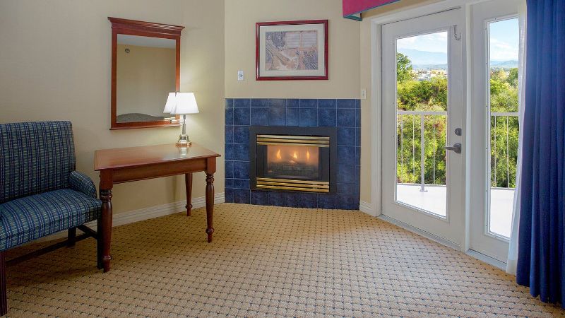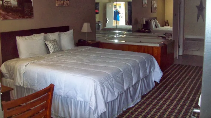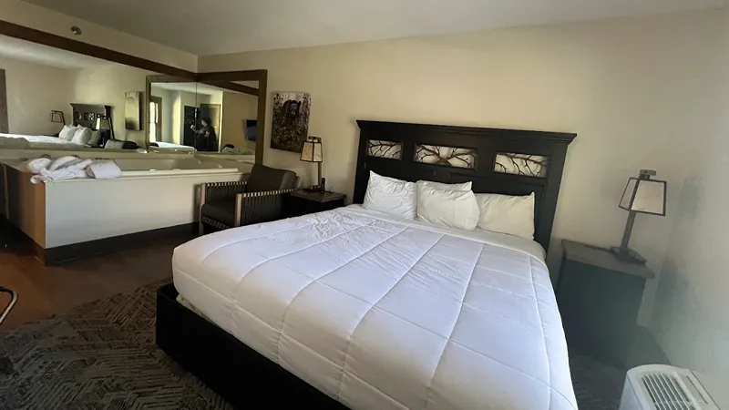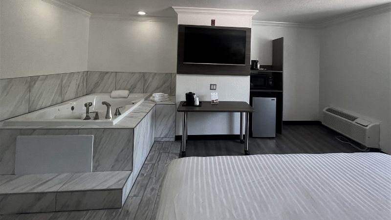 Ours was a king room with an electric fireplace, a very comfortable mattress and bedding, easy to control HVAC, clean and roomy bath, and a fabulous big flat screen tv with lots of crystal clear cable channels! We also had a mini-fridge that kept our water and sodas perfectly icy cold.