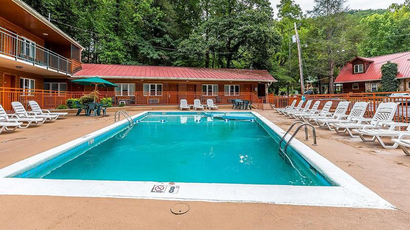 Casual hotel with Jacuzzi in room, fireplaces and pool, close to the waterfalls of the Great Smoky Mountains National Park.