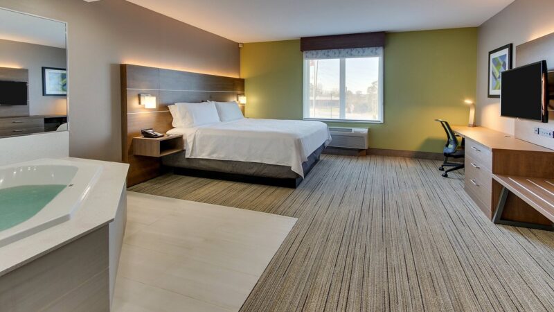 Currently, the best hotel with hot tub in room in Georgia is Holiday Inn Express & Suites Helen. You can have a look at our full list of best hotels with hot tub suites in Georgia.